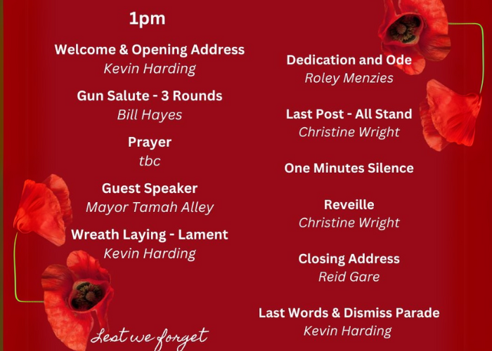 The Alexandra-Clyde RSA will be holiday a service here and we are looking for any groups who would like to join us by laying a Wreath.