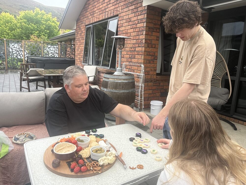 Board games and platters . . . playing games in Clyde on Christmas morning are (from left) Ray, Asher and Charlize Thomson. PHOTO: SHANNON THOMSON
