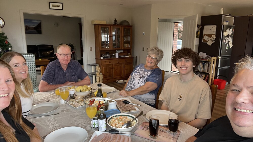 Having Christmas lunch in Clyde are (from left) Shannon Thomson, Charlize Thomson, James Whyte, Kate Whyte, Asher Thomson and Ray Thomson. PHOTO: RAY THOMSON