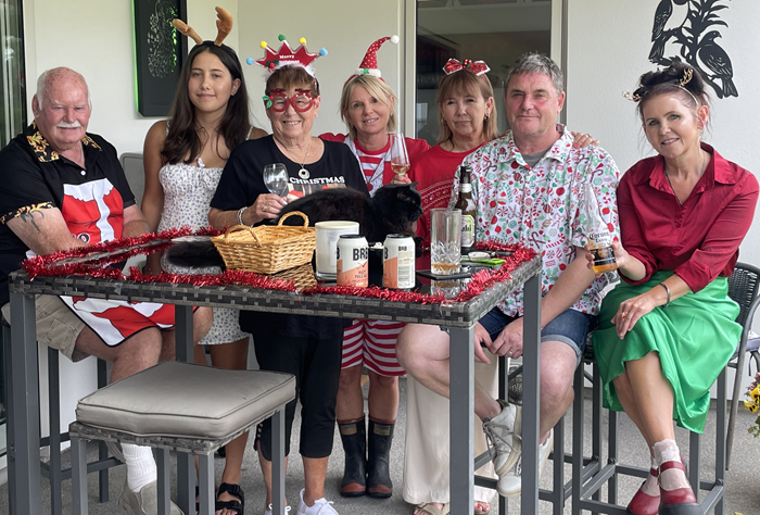 The McLeans got in the Christmas spirit - spot Pinot the cat. From left: Rex, Kenya, Margaret, Vicki, Tracey, Daryl Sonya PHOTO: FRASER MCKNIGHT
