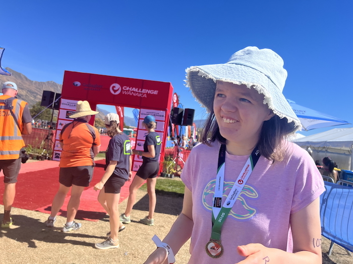 She had a small group of people to support on the day of the event but she didn't mind getting on Lake Wānaka for the swim leg as the water was so warm.