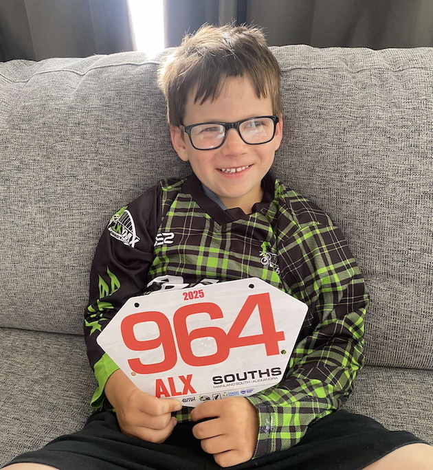 Mack Naylor (6) was gutted not to be able to race in Souths, but headed along to support his club and collect his race plate all the same.