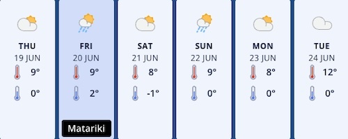 “With clear skies great for early Matariki viewing, much of the South Island is dipping well into the negatives in the mornings - lovely winter temperatures.”