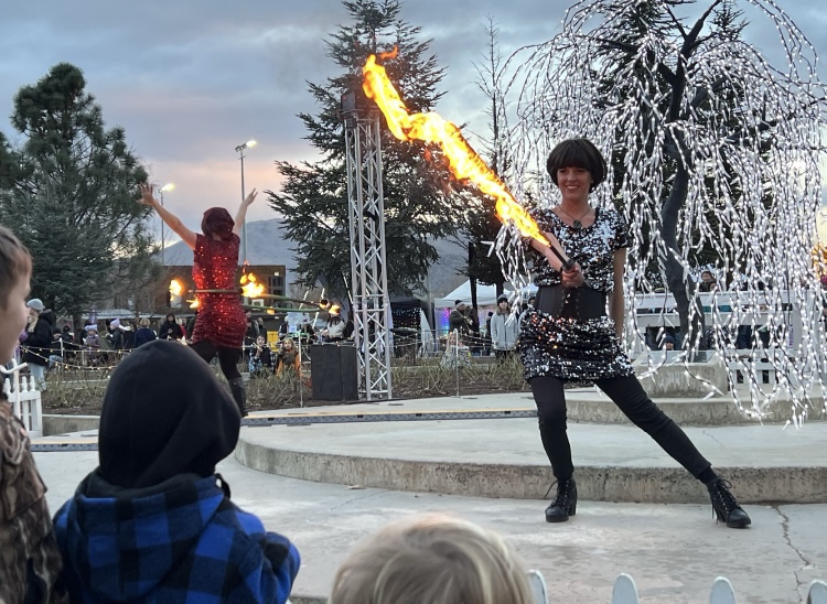 Fire dancers put on a show at Cromwell’s winter gathering. Image: The Central App