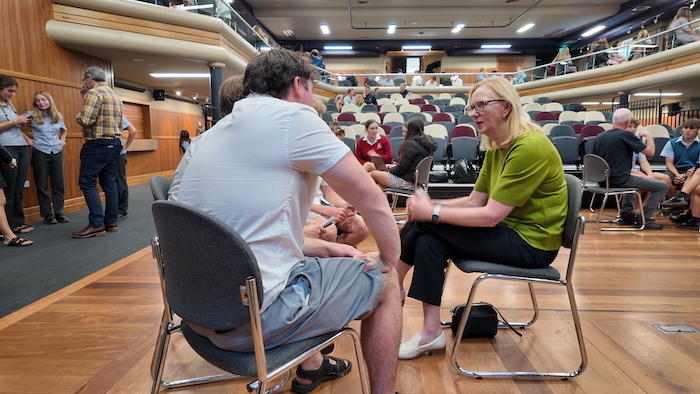 YES kaiārahi ako (teaching mentor) Regan Powell introduces the volunteer mentors from a wide variety of business backgrounds, including consulting, entrepreneurship, marketing, law, human resources, sales and tourism. PHOTO: Business South