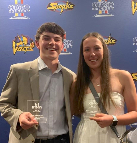 Siblings Thomas and Hannah O’Connor with their Otago Cricket awards last season. PHOTO: Supplied