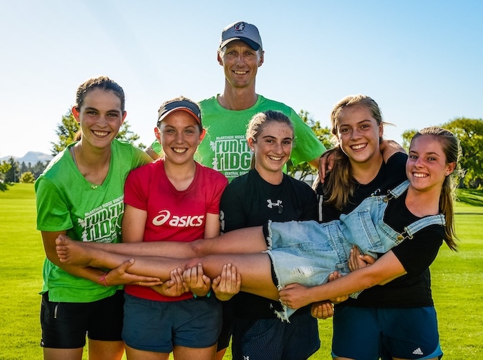 Shayne O'Connor (at back) with Hannah (second from left) and her team mates, when they were in year eight, at Molyneux Cricket Club prize giving in 2019. PHOTO: Image Central