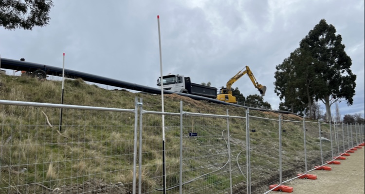 Construction has involved tree felling and pipeline installation, with temporary disruption to the Lake Dunstan Trail.