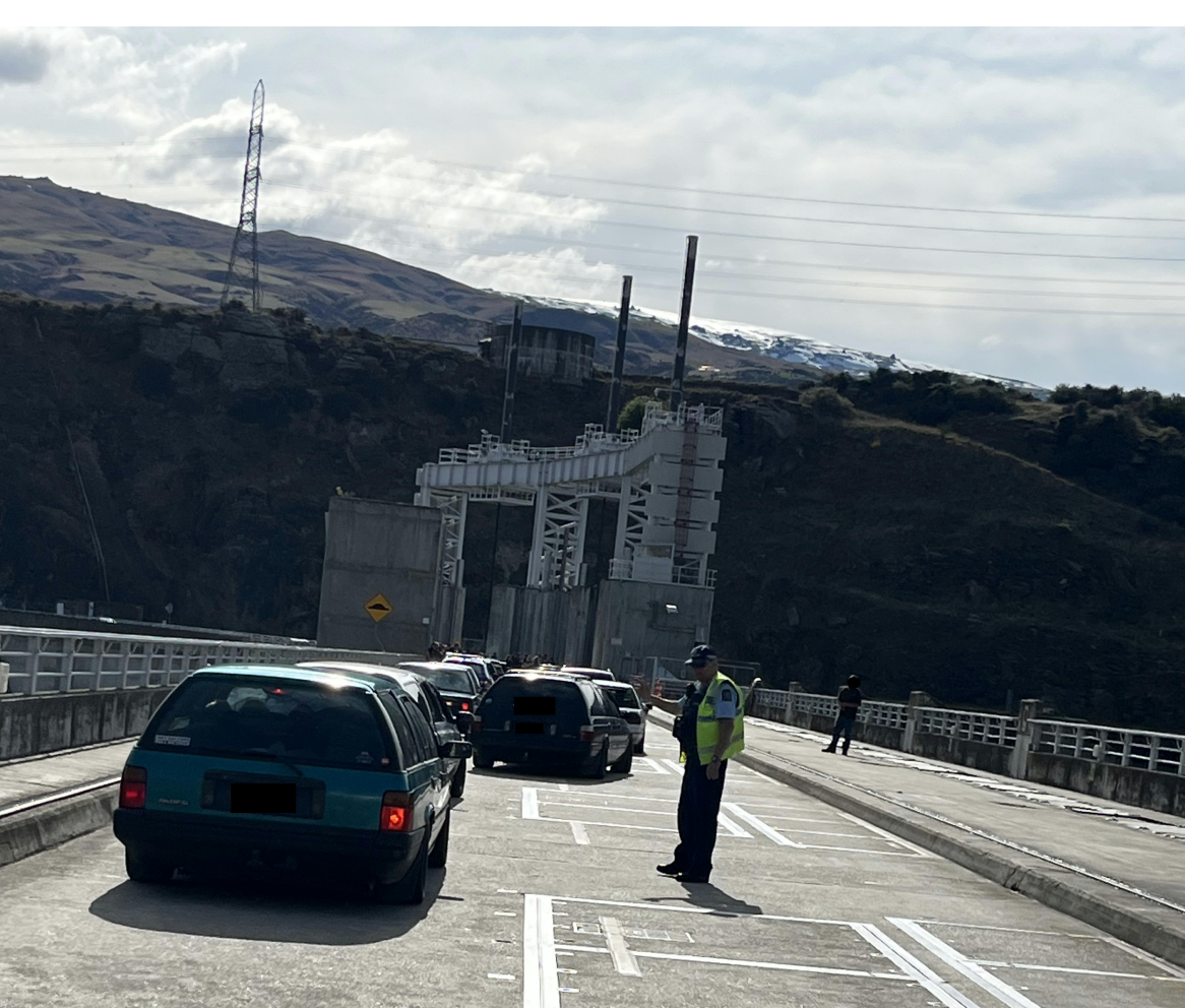 Police stopping those in the ‘Around The Mountain’ convoy on the Roxburgh Dam in recent years. Photo: Supplied