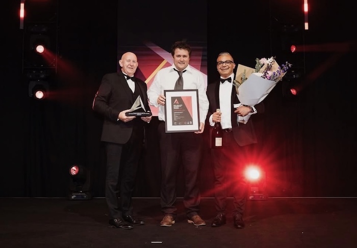 Peter Breen (middle) accepting the award on behalf of the Breen Construction team. PHOTO: Supplied