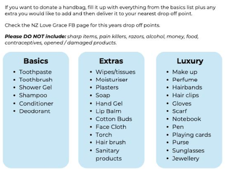 To find out more, visit the Love Grace Handbag Appeal New Zealand Facebook