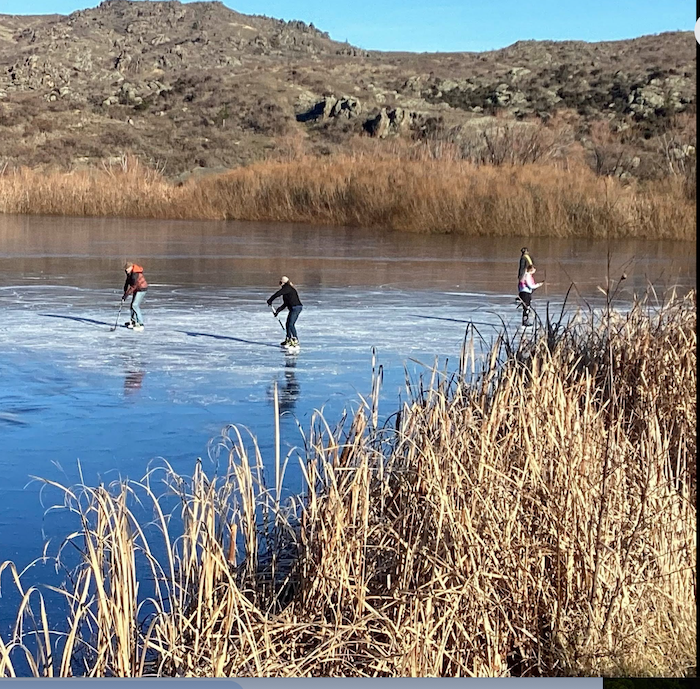 Ice skaters and hockey players have been spotted on the dam over the past week, but people needed to look out for markers indicating the safest areas where the ice was thick enough.