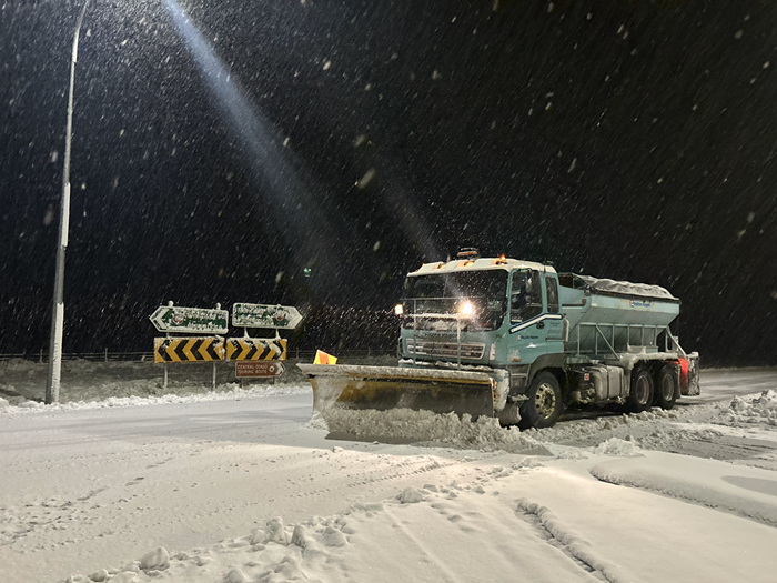 Road crews have been working through the night and early morning to clear thick snow, which in some areas of the Maniototo is over 30cm deep. Temperatures are hovering around 0˚C and are expected to drop again at daybreak, raising concerns about black ice on bridge decks and shaded areas.
